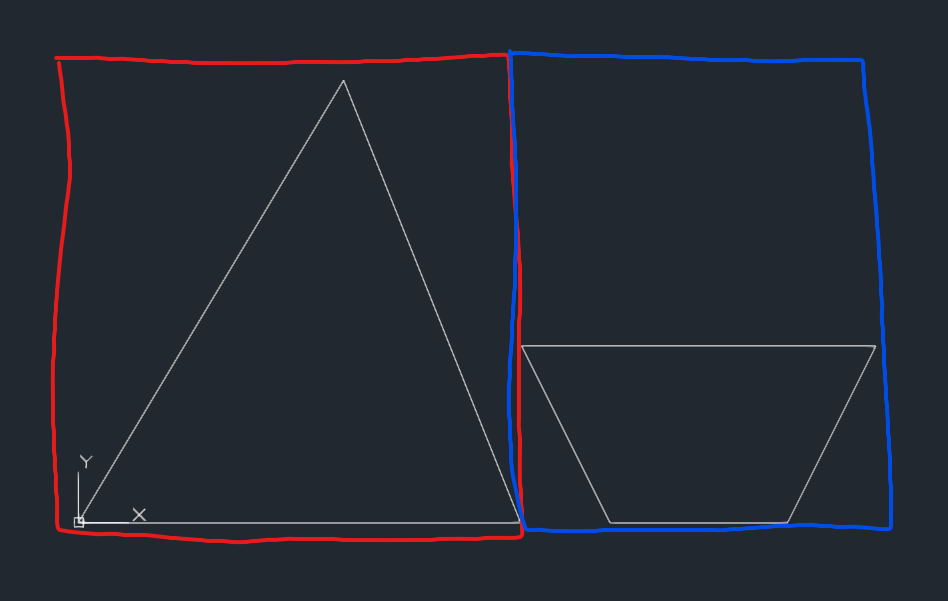 This code will create two blocks that have a light weight polyline of a triangle and a trapezoid. We want the two object to have a specific gap between them without intersecting. WE CAN DO THIS! No Calculus required. We do this by exploding the block and then offsetting the polyline a specific distance with method Offset. It then determines if there is an intersection between the two offset objects by using the IntersectWith method . If it does find an intersection, it will iterate and move the second object until there is no longer and intersection. Block 1 is a triangle and block two is a trapezoid. From the image below you can see there are two intersection points.