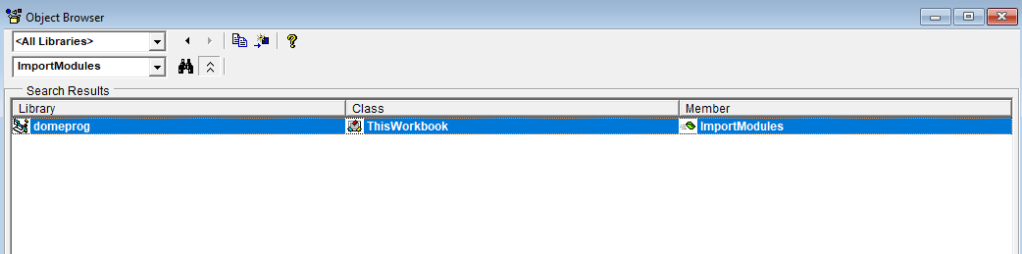 The code above will run the macro called ‘ImportModules’ one second after the workbook is opened.